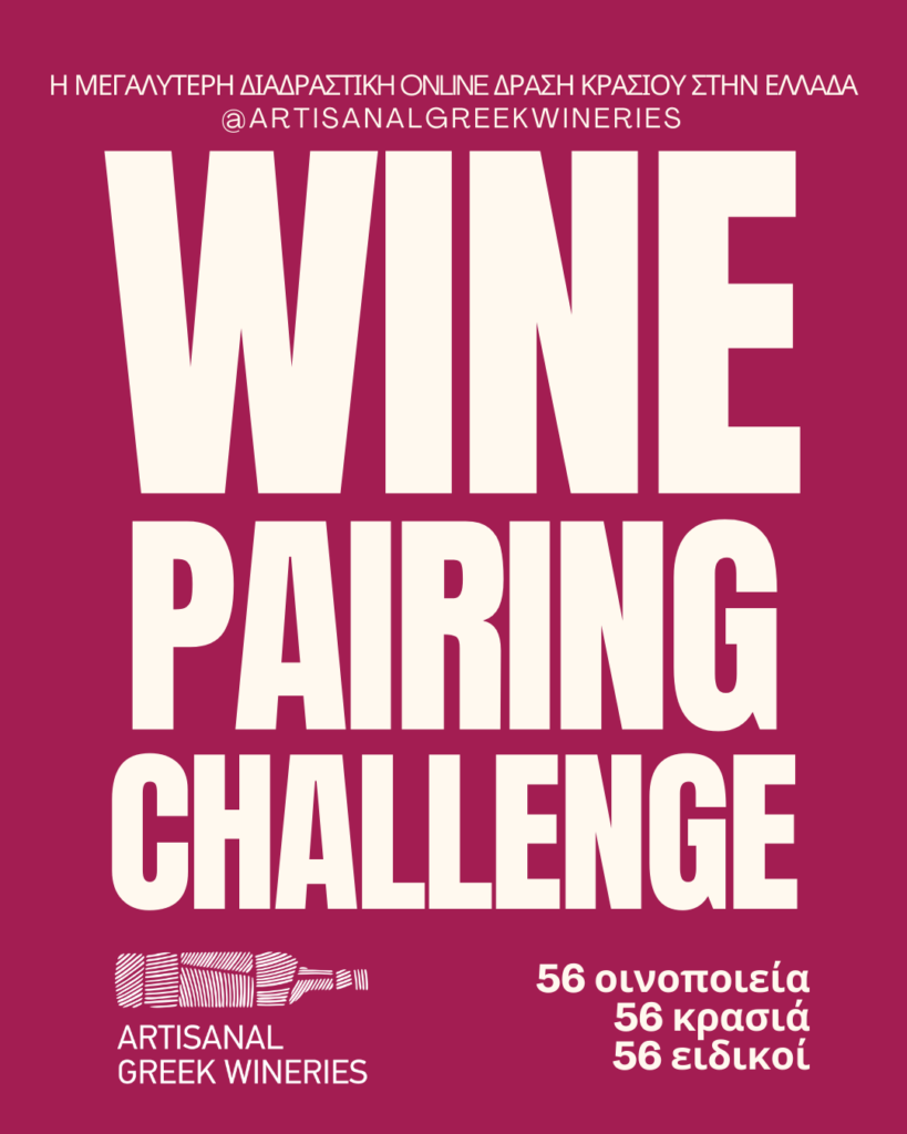 Τη μεγαλύτερη διαδραστική online δράση κρασιού που έχει πραγματοποιηθεί ποτέ στην Ελλάδα διοργανώνει ο Σύνδεσμος Μικρών Οινοποιών Ελλάδος, παρουσιάζοντας το Artisanal Greek Wineries – Wine Pairing Challenge.